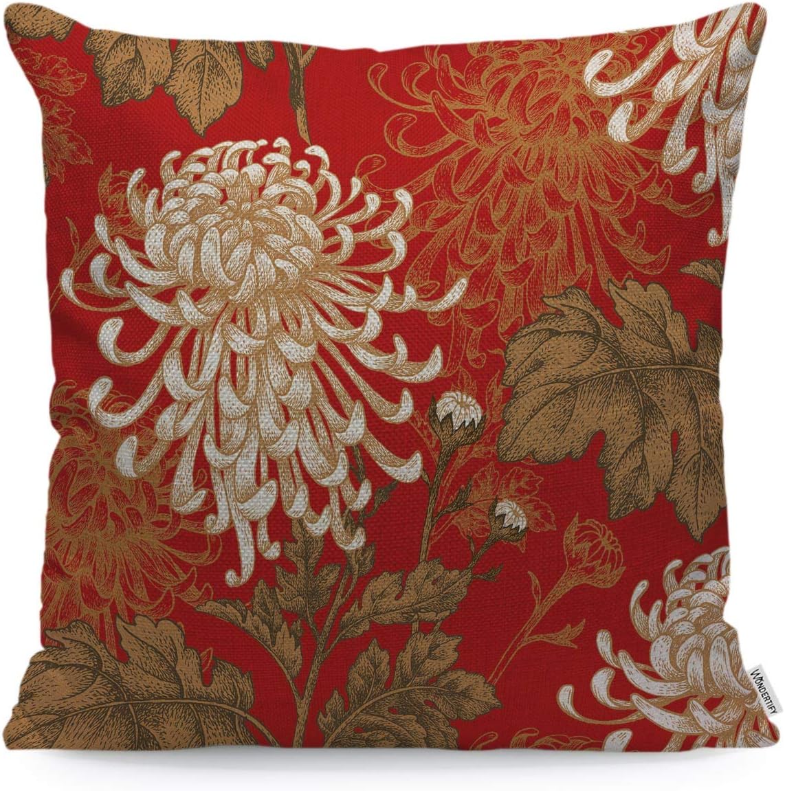 WONDERTIFY Throw Pillow Case Cover Apanese National Flower Chrysanthemum Luxury Design Floral - Soft Linen Pillow Case for Decorative Bedroom/Livingroom/Sofa/Farm House - Cushion Covers 18x18 Inch