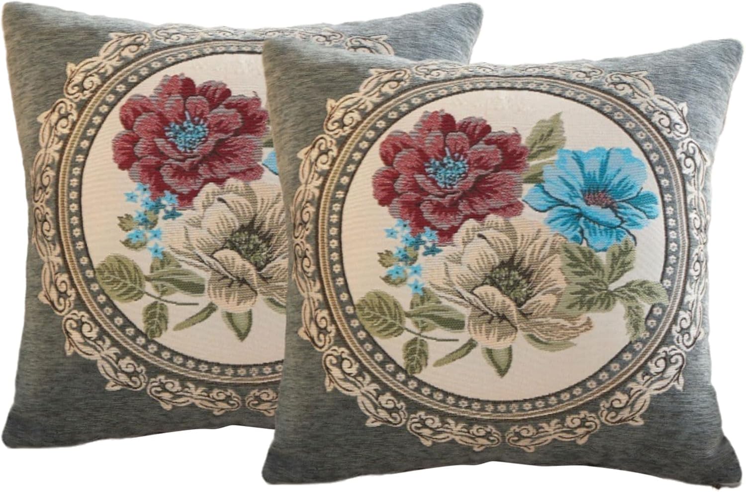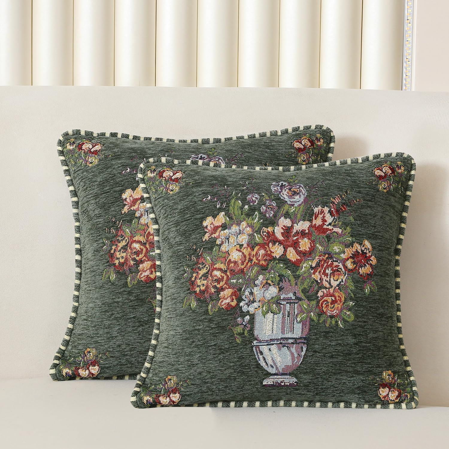 Set of 2 Vintage Green Throw Pillow Covers for Sofa, Cushion Headboard Pillow Covers,Floral Embroidered Cushion Cover for Living Room
