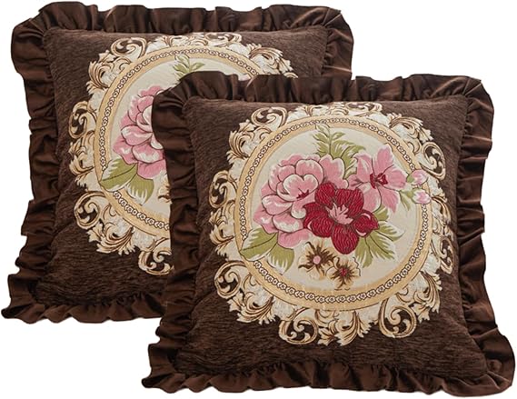 Set of 2 Chenille Vintage Throw Pillows Covers 18x18in Sofa Couch Pillows for Living Room Floral Embroidered Cushion Cover for Bed Chairs Car (Brown)