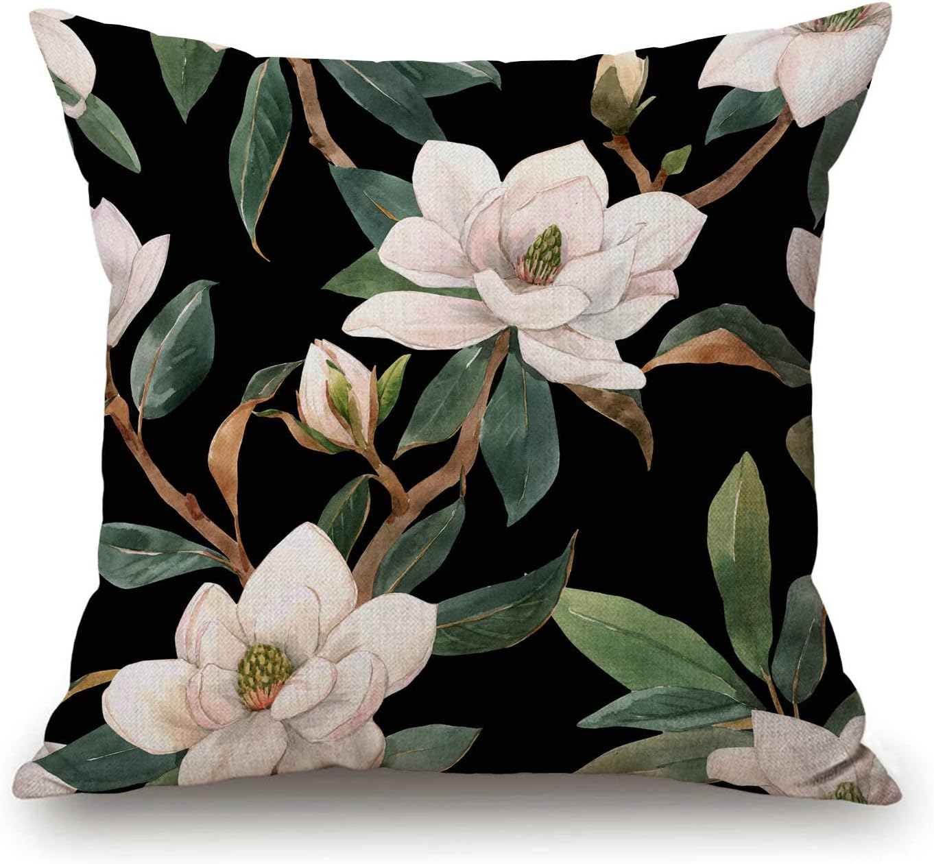 Vintage Floral Black White Green Cotton Linen Square Throw Waist Pillow Case Decorative Cushion Cover Pillowcase Sofa 18"x 18"