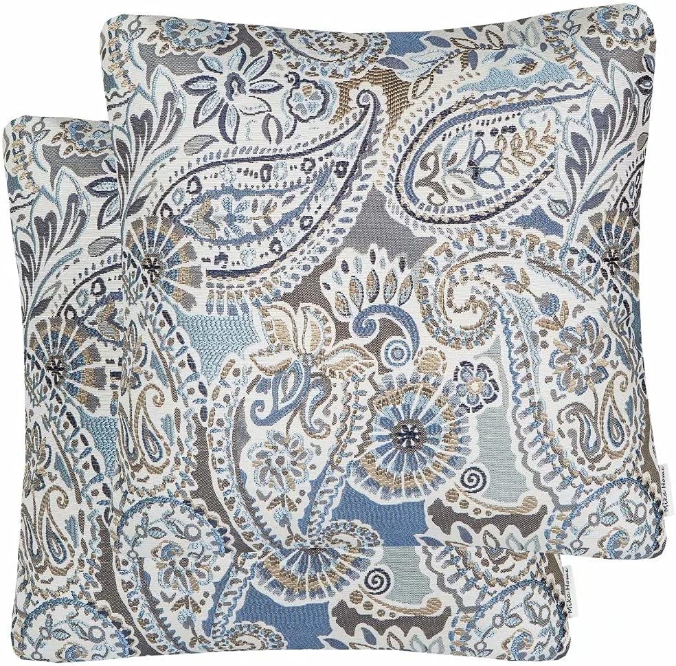 Pack of 2 Throw Pillow Covers Decorative Pillow Shells for Sofa Couch, Paisley Pattern, 22x22 Inches,Blue Brown Cream Multicolor